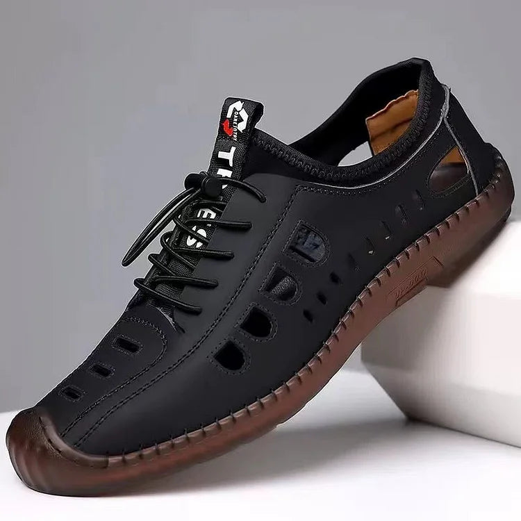 Ez a pár cipő a bőr és a gumi tökéletes kombinációja. Felső része kiváló minőségű bőrből készült, mely puha, légáteresztő és könnyen karbantartható. A felső rész üreges kialakítást kapott, amely javítja a légáteresztő képességet, miközben biztosítja a lábak védelmét. Az üreges kialakítás kielégít bizonyos kültéri igényeket. A sportrajongóknak nem kell gyalogolni, mezítláb kell járniuk folyón vagy tavon való átkeléskor, ami csökkenti a véletlenszerű lábsérülések kockázatát is.