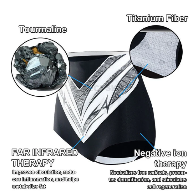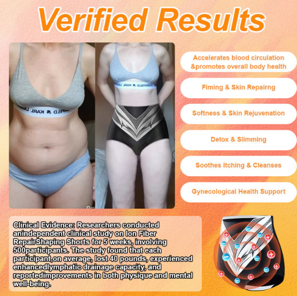 A negatív ionokat felszabadító titánszálak segítségével a rövidnadrág semlegesíti a szabad gyököket, csökkenti az oxidatív stresszt és elősegíti a méregtelenítést, amelyek kulcsfontosságúak a hegek, striák és pattanások csökkentésében, miközben enyhítik a nőgyógyászati ​​tüneteket. A vizsgálatok két hét alatt mutatják meg az eredményeket.
