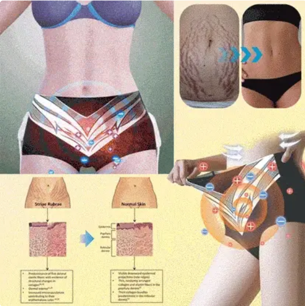 A terhességből vagy testsúlyváltozásból eredő hegek és striák láthatóan csökkennek ezeknek a rövidnadrágoknak a rendszeres használatával, ami fokozza a kollagéntermelést, elősegíti a hegek halványítását és javítja a bőr rugalmasságát. A harmadik héten a negatív ionok felgyorsítják a bőr regenerálódását és javítják a keringést, ami simább, egyenletesebb tónusú bőrt eredményez. Ez a kettős hatású módszer hatékonyan halványítja a hegeket és striákat.