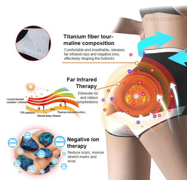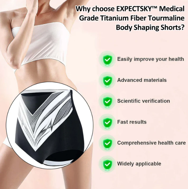 Az EXPECTSKY™ Tourmaline Magnetic Shapewear javítja a keringést, csökkenti a gyulladást és serkenti a zsíranyagcserét a távoli infravörös sugarakkal. A titánrostok negatív ionokat szabadítanak fel, hogy segítsék a méregtelenítést és a sejtregenerációt. Ezek a rövidnadrágok a zsír felhalmozódását, a nyiroködémát, a varikózus vénákat célozzák meg, és segítenek csökkenteni a hegeket, striákat, pattanásokat és nőgyógyászati ​​problémákat az általános egészség megőrzése érdekében.