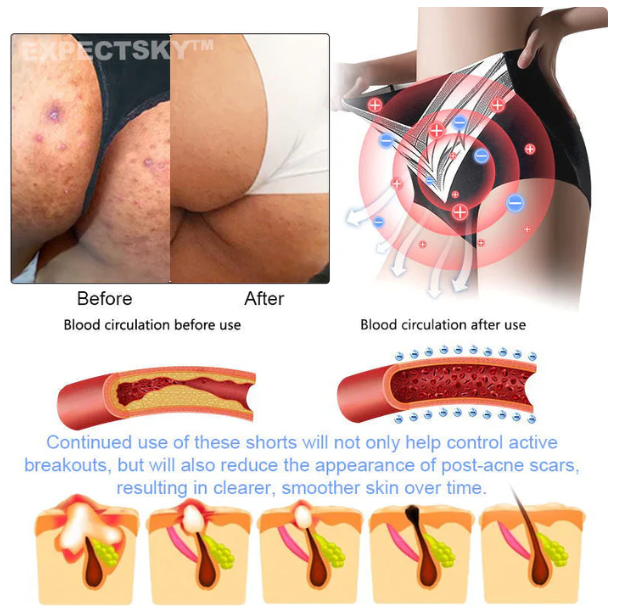 A pattanások, különösen a combon és a fenéken jelentősen csökkenthetők ezeknek a rövidnadrágoknak a rendszeres használatával. A Journal of Dermatological Science megerősíti a FIR szerepét a bőr gyógyításában és a gyulladás szabályozásában. A negatív ionok méregtelenítik a bőrt és semlegesítik a pattanást okozó szabad gyököket, javítva a bőr tisztaságát. Következetes használat mellett ezek a rövidnadrágok segítenek a pattanások megfékezésében és elhalványítják az akné utáni hegesedést, ami idővel tisztább, simább bőrt eredményez.