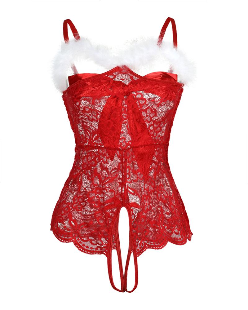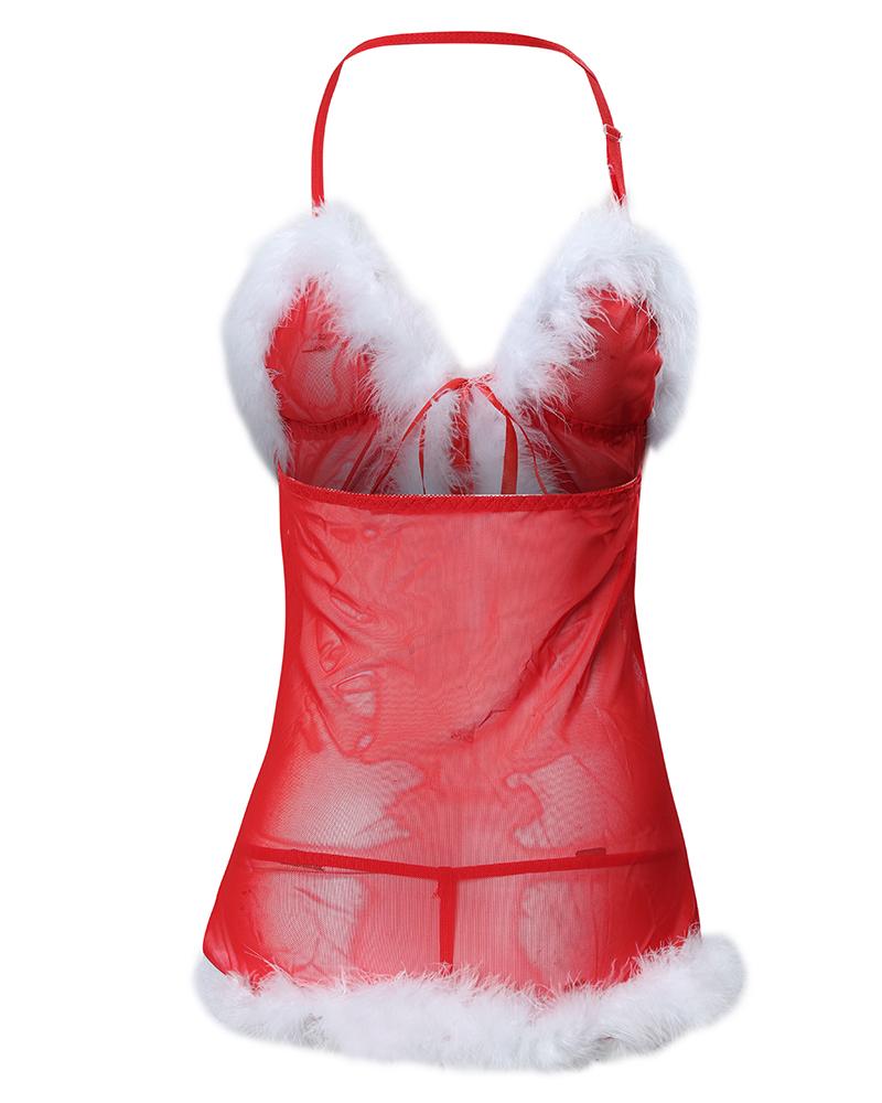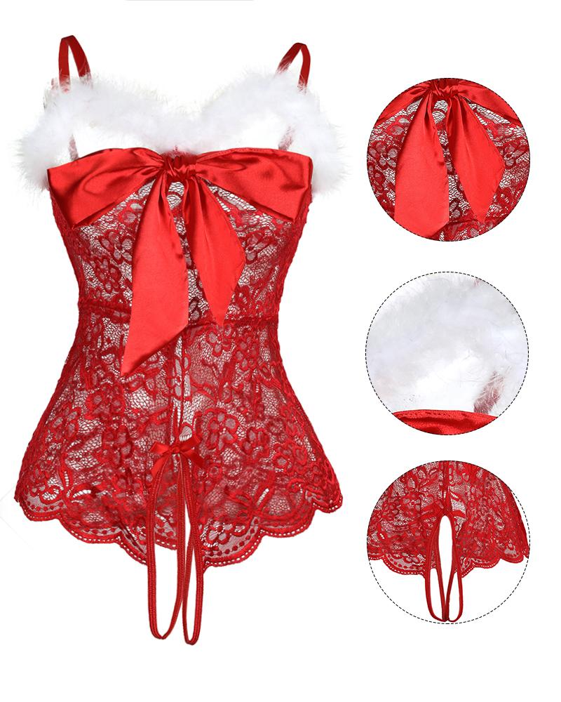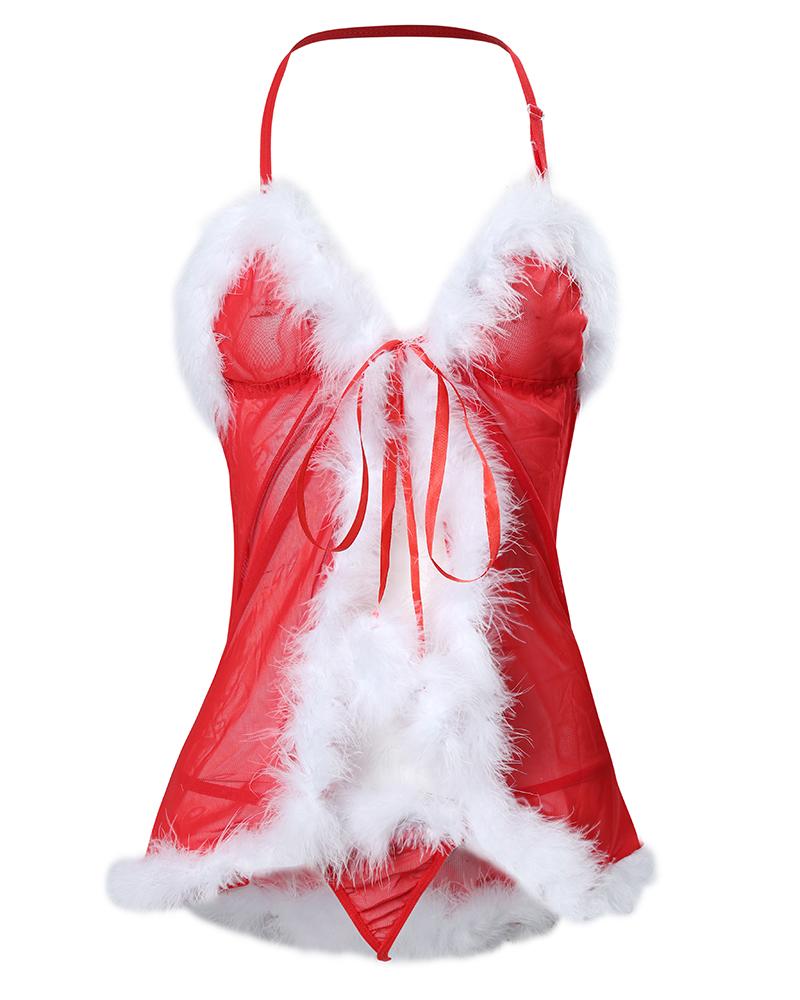 Karácsonyi kötőfék fehérnemű tollakkal és masni Pom Pom dekorációval Babydoll bugyival