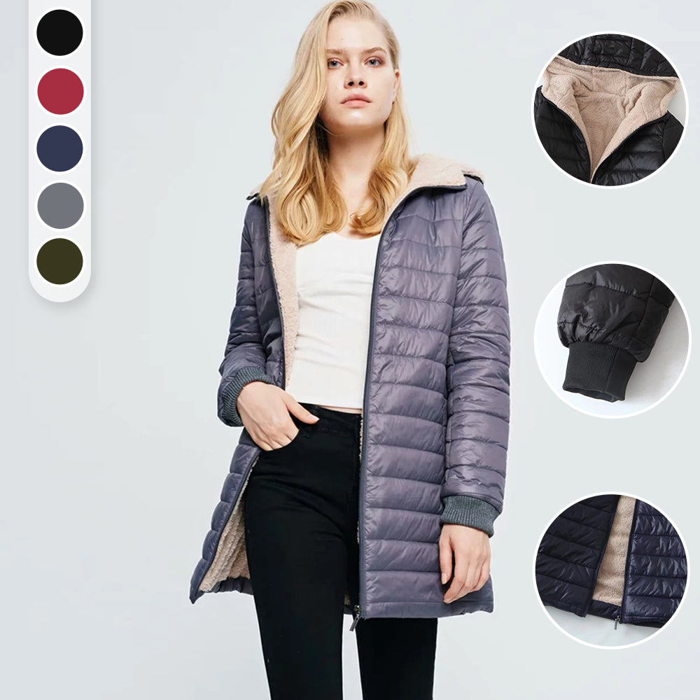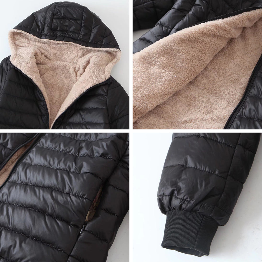 Női középhosszú Sherpa pamut kapucnis dzseki