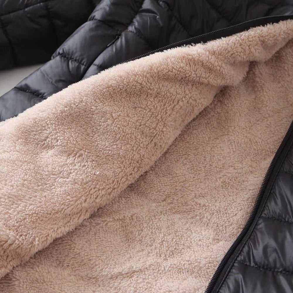 Páratlan melegség: Ez a kabát báránygyapjúval van bélelve a felülmúlhatatlan melegség érdekében. A teljesen természetes bárányplüss természetes meleget biztosít melegségért és kényelemért.