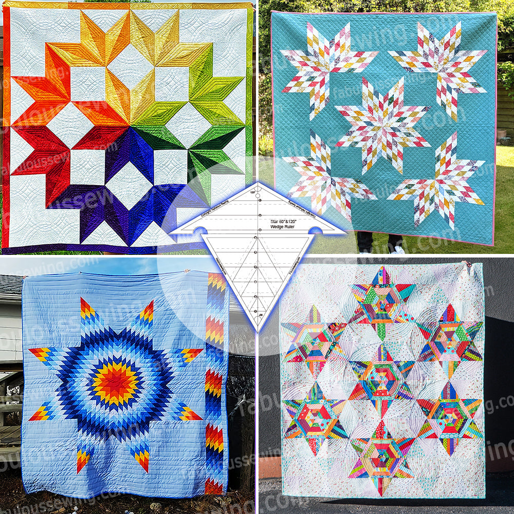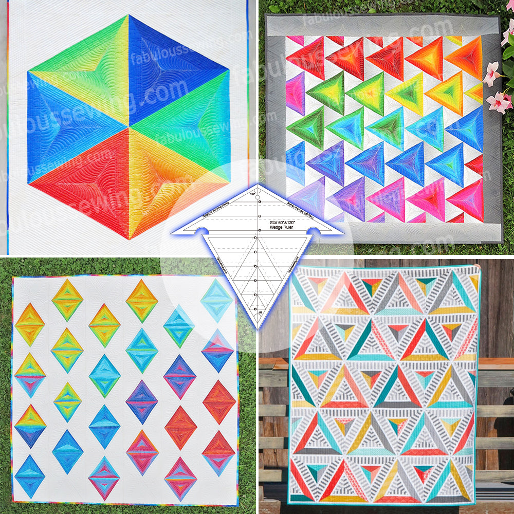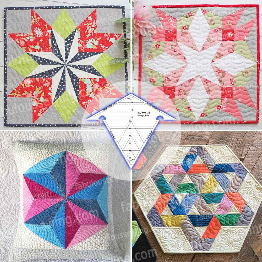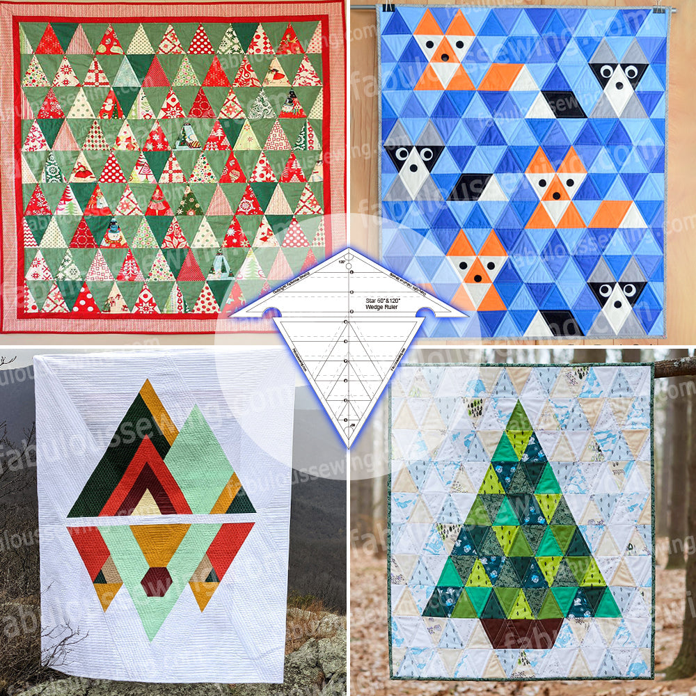 Ideje hozzátenni a paplanhoz. Csillag 60°-os és 120°-os ékvonalzónk gyorsan vág különféle háromszögeket, gyémántokat és ékeket. Több mint 20 különböző méretváltozatban készítsen egyedi paplanprojektek sorát, hogy élvezze a paplan varrás varázsát!