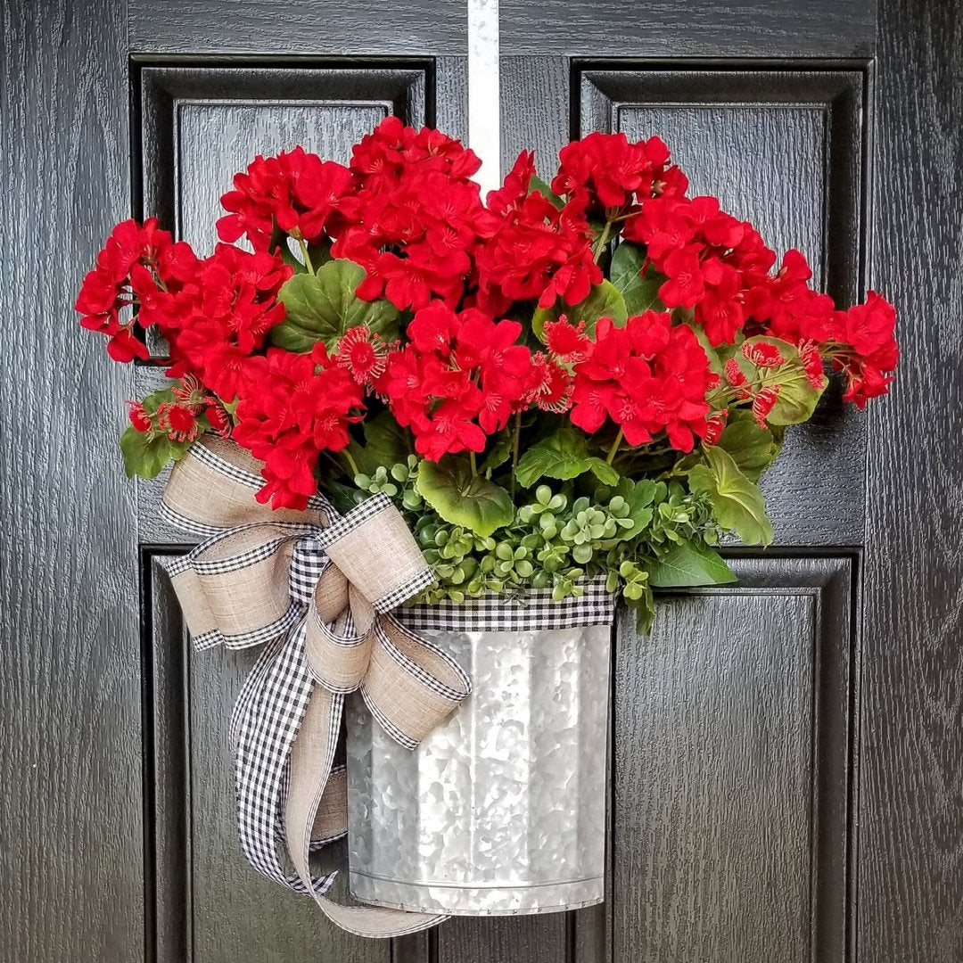 💐Piros muskátli füzér a bejárati ajtóhoz. Ez a koszorú nagyon meleg és barátságos. Imádni fogod ezt a vödröt a küszöbön!💐
