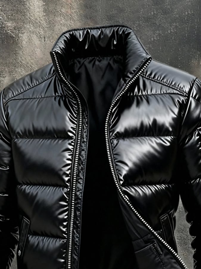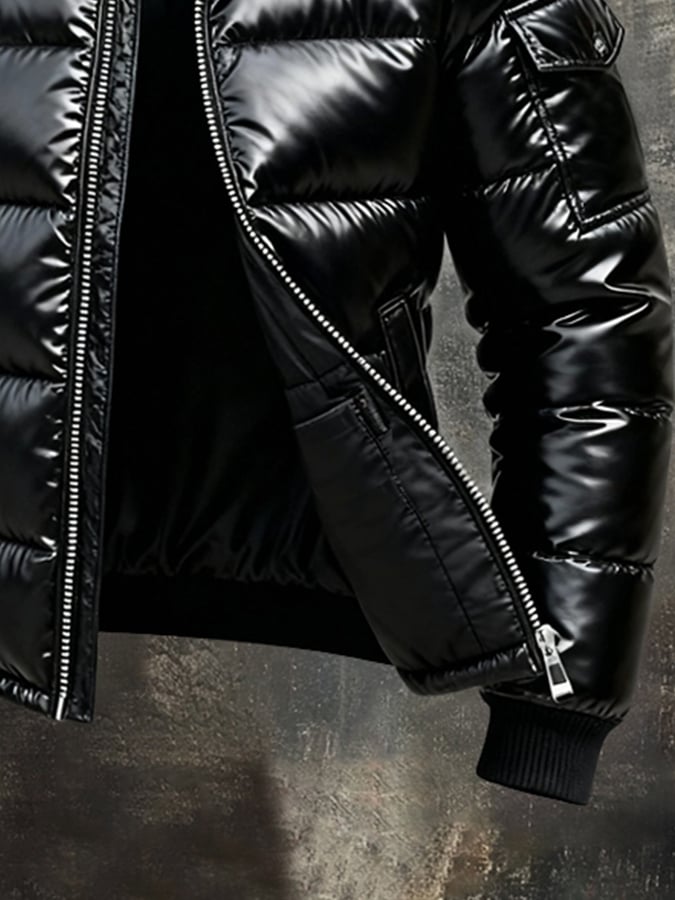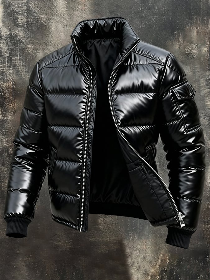 Férfi retró kültéri dzseki/kabát, meleg, fényes (belső zsebekkel)