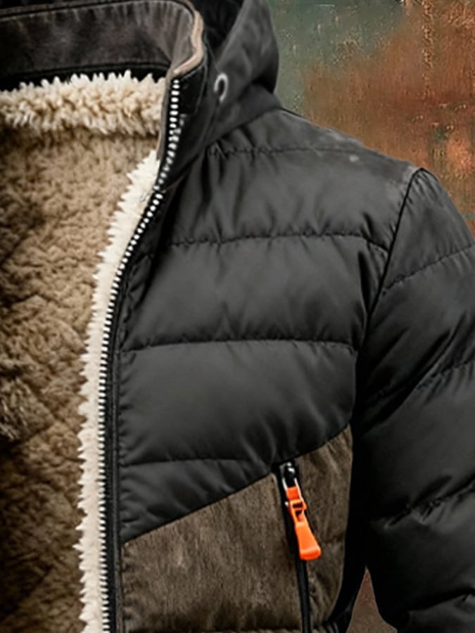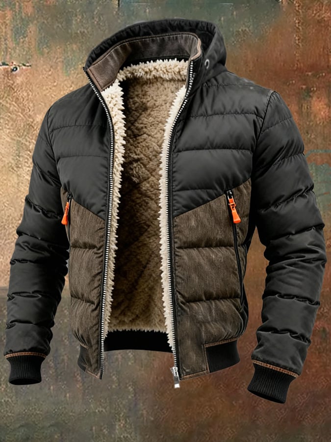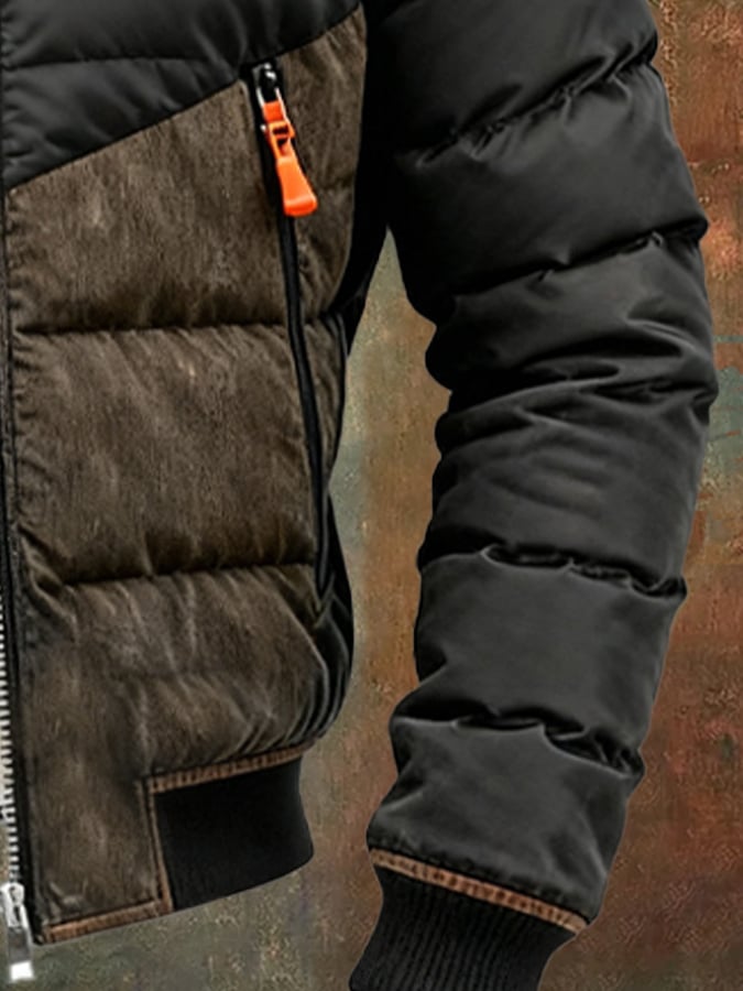 Férfi retró, steppelt, patchwork kabát cipzárral, meleg és kényelmes