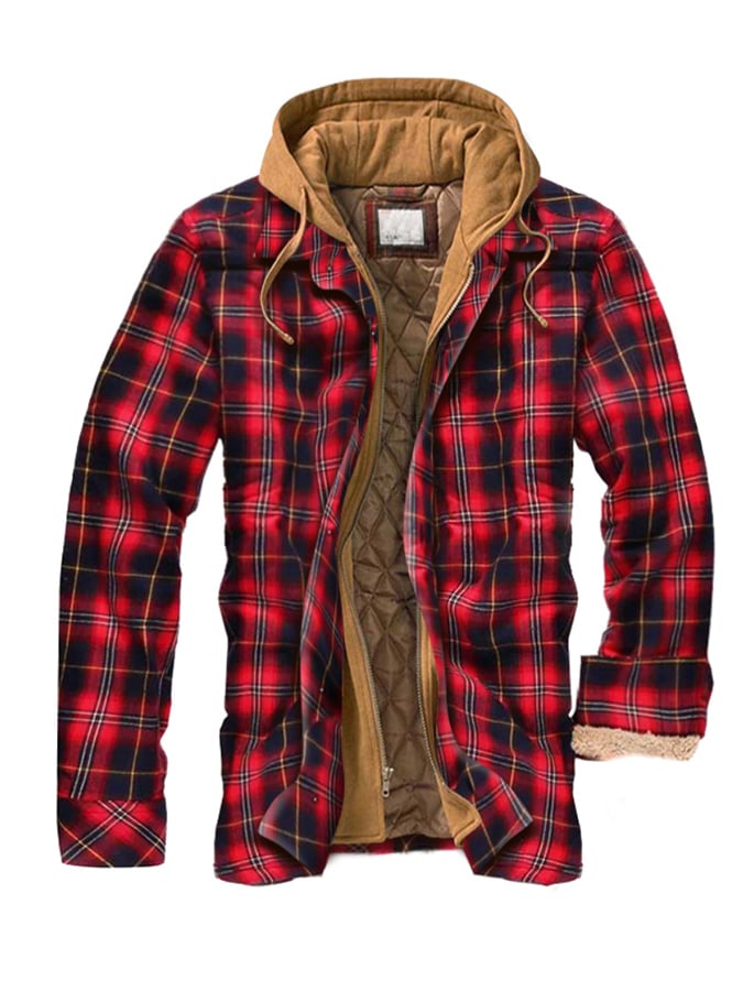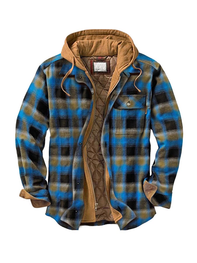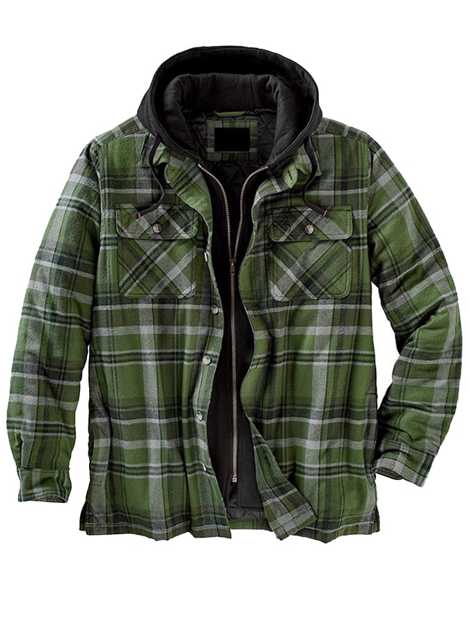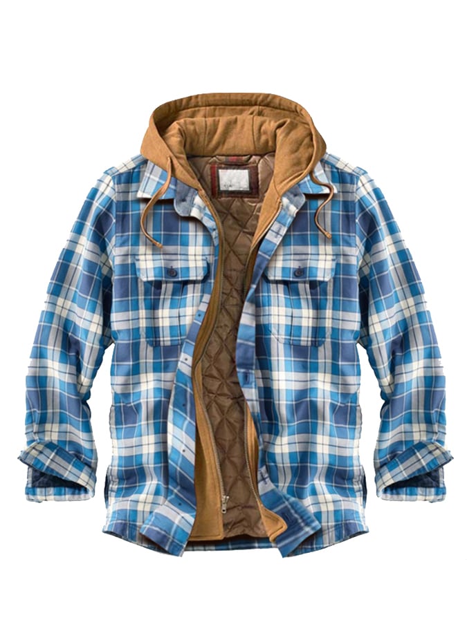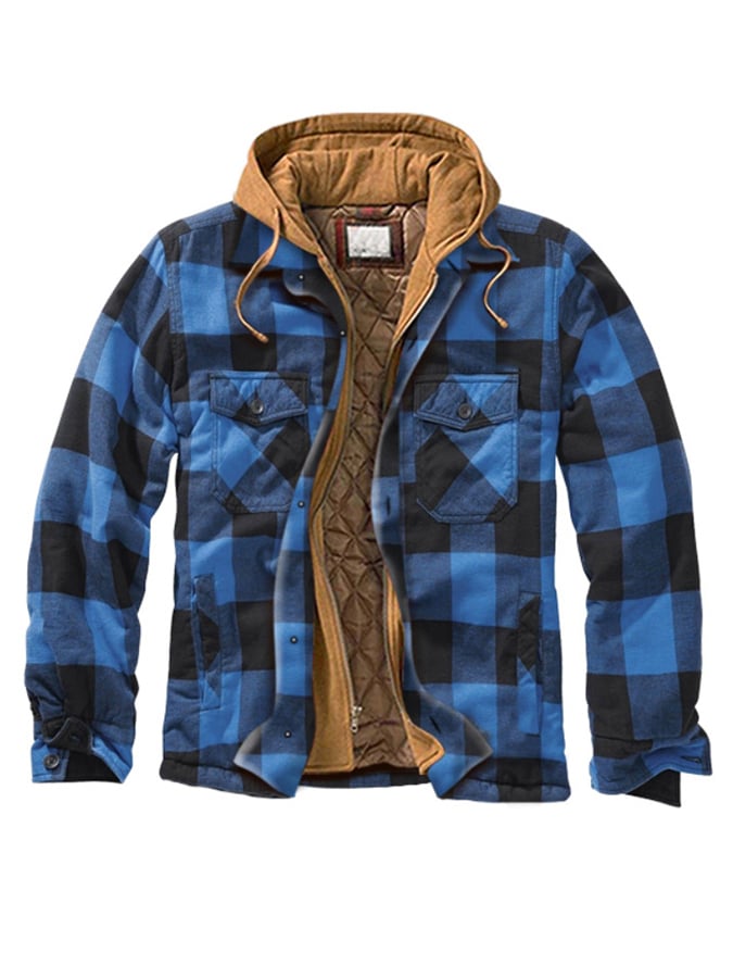 Férfi őszi, téli kapucnis, vastagított cipzáras hamis kétrészes bélelt dzseki