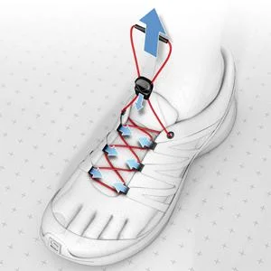 A Quicklace egy speciális és tartós poliészter zsinór, amely mindenféle cipőfűzőn átfűzhető súrlódás nélkül. Húzással a fűzők egyenletesen megfeszülnek. Csavarja rá a kupakot, és tegye az összes tárgyat a húzózsinóros zacskóba.
