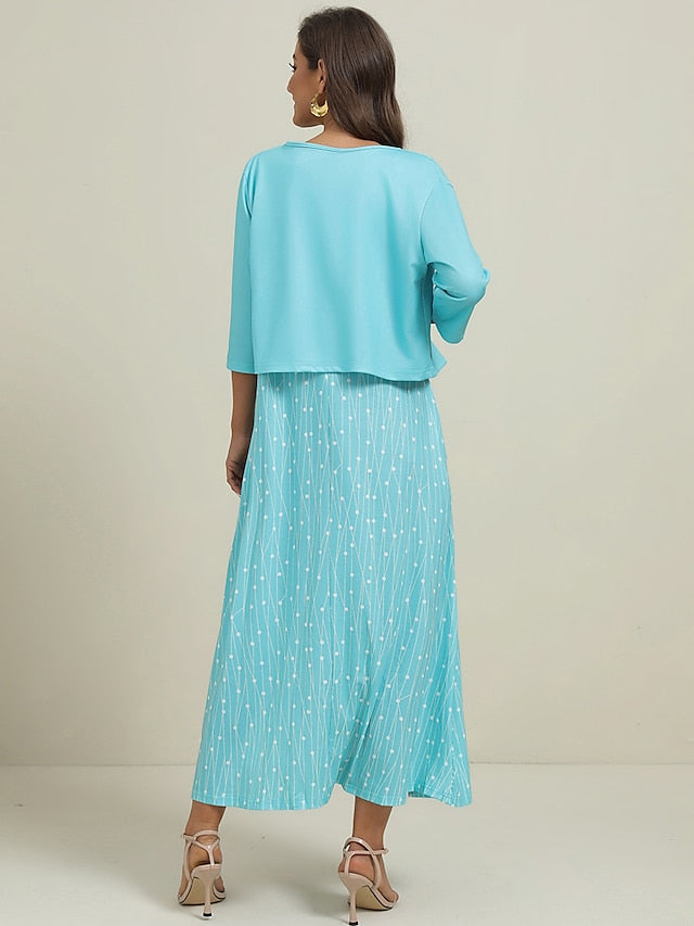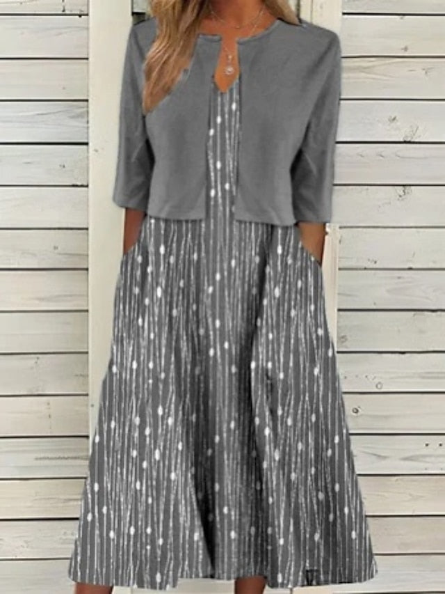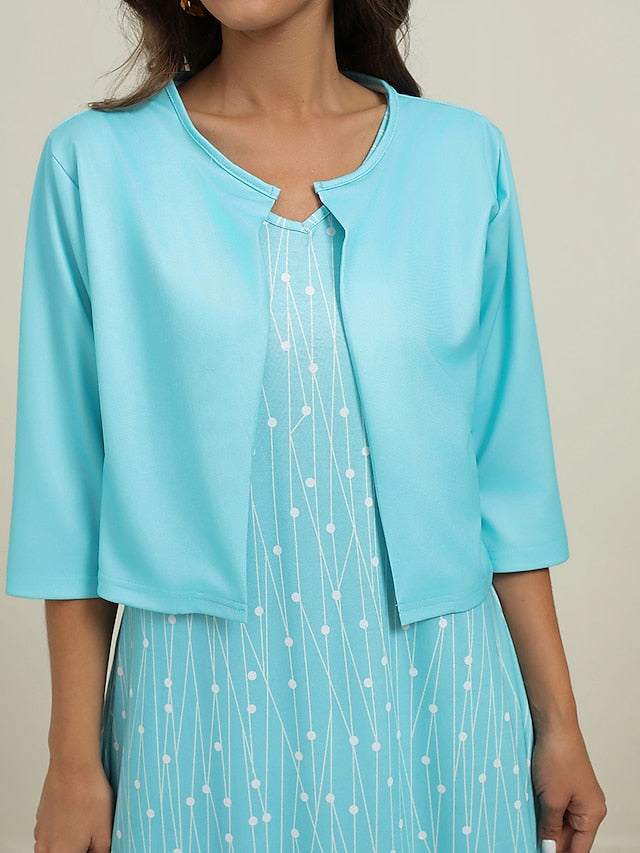 Női, kétrészes ruhaszett Alkalmi ruha Esküvői Vendégruha Party Napi Elegáns Nyomtatott Zsebek Midi Ruha V nyakú Fél ujjú Geometrikus Pöttyös Normál Rózsaszín Kék