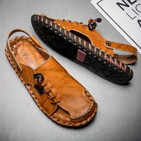 Nagyméretű férfi kültéri szandál légáteresztő marhabőrből