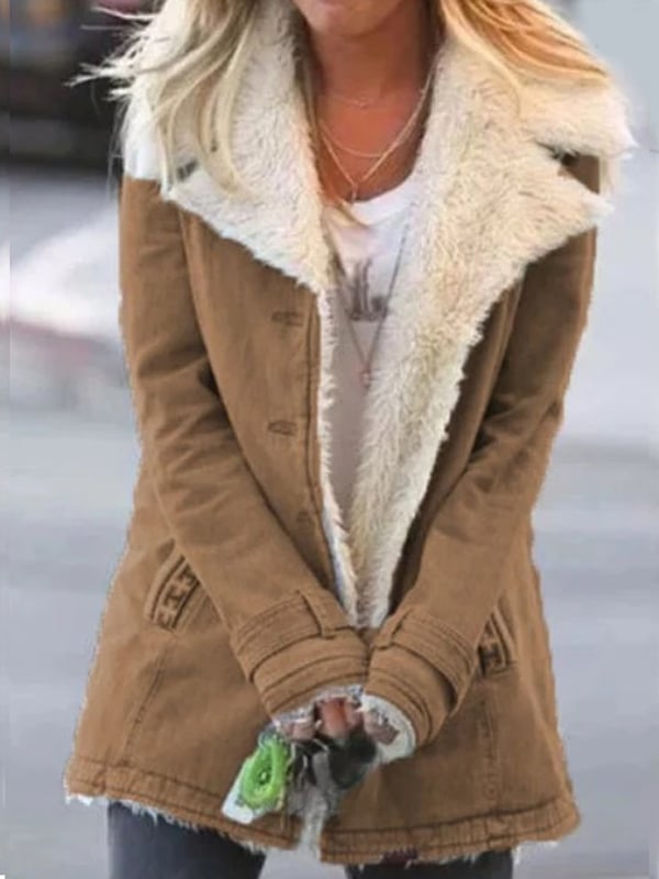 Női tömör gyapjú, hosszú ujjú termikus kabát