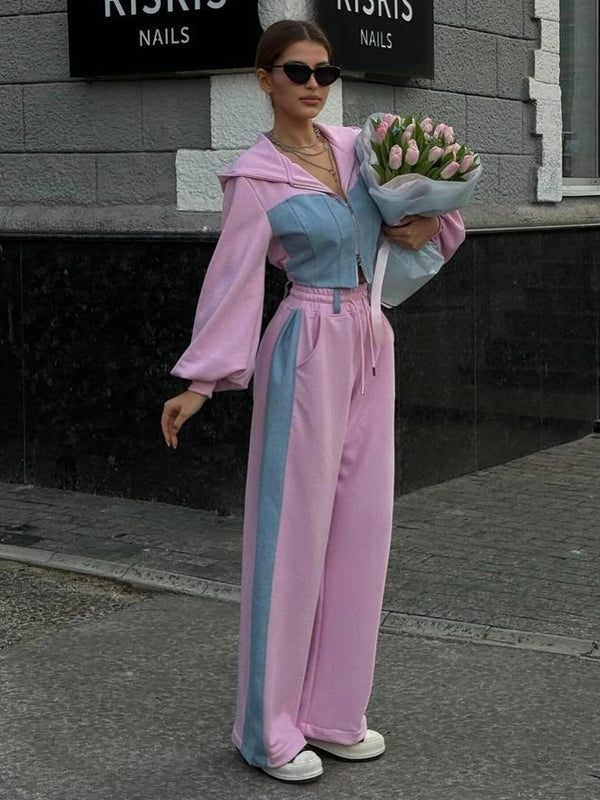 Női szexi kontraszt színű zsebes alkalmi tréningruha
