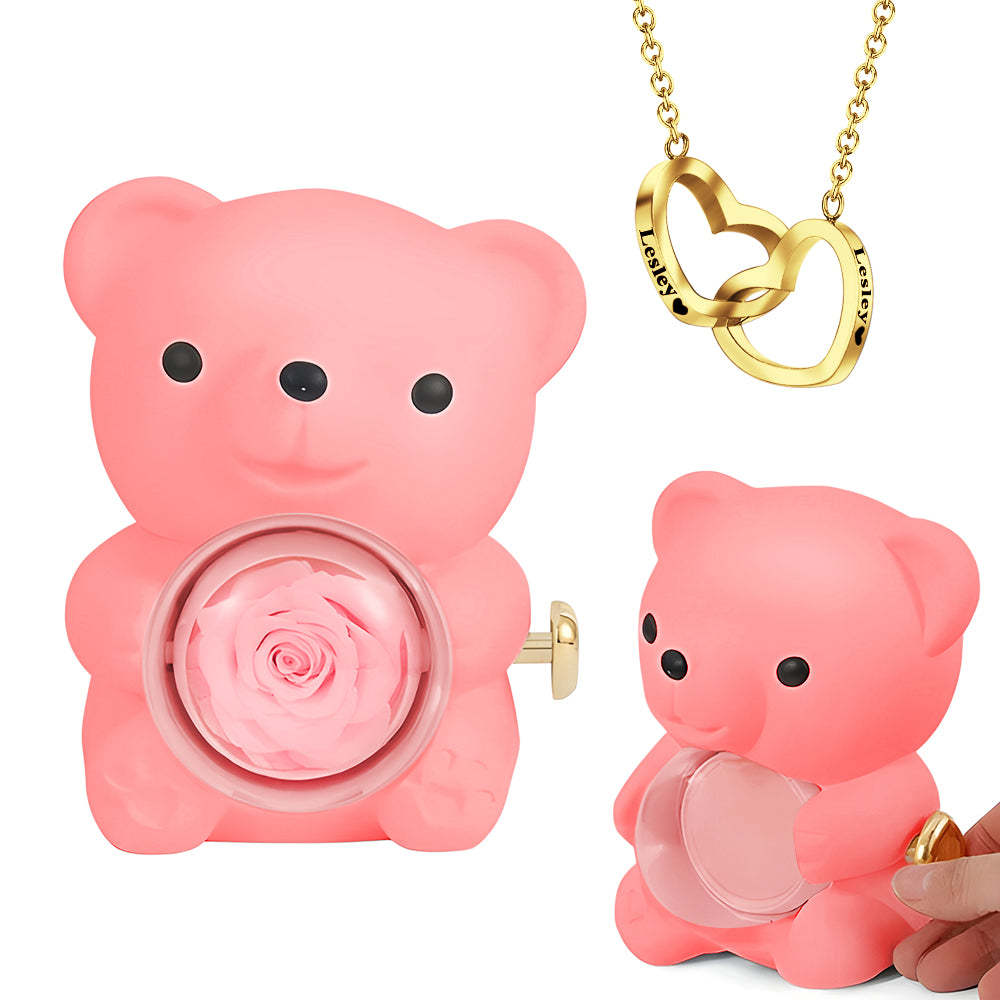Örök rózsa medvedoboz gravírozott nyaklánccal