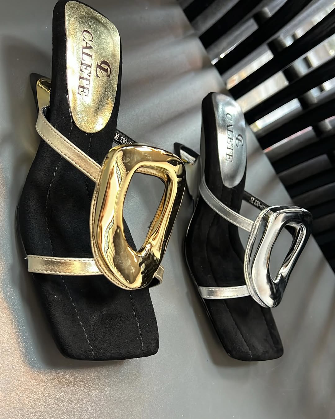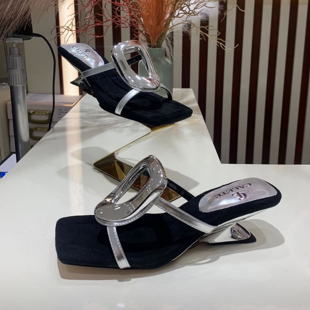 Női nyári, modern szandálok alacsony sarkú, karika stílusú