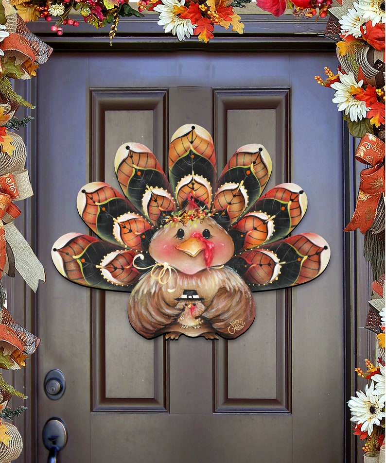 OKRASKI ZA ZAHVALNI DAN, JESENSKI OKRASKI ZA ZAHVALNI DAN, LESEN OBEŠALNIK ZA VRATA S PURANJIM VENCEM, CENA JAMIE MILLS - STENSKI DEKOR 8457702H