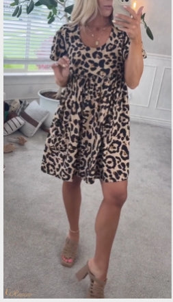 Lépj be egy olyan világba, ahol a merész találkozik a lazasággal ebben a réteges leopárdmintás ruhában – a vad báj, a könnyed kényelem és a mindennapi sokoldalúság tökéletes kombinációja egy modern trenddiktátor számára.