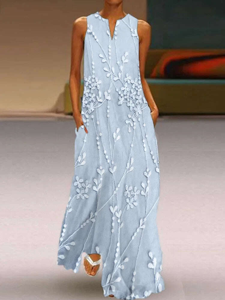 Elegáns és lendületes hosszú ruha virágokkal hímzett csipkével