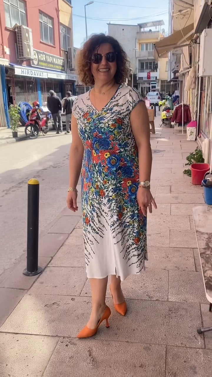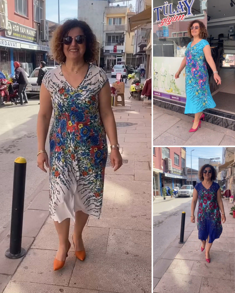 A csomag tartalma: 1 * nyomtatott, V-nyakú női ruha