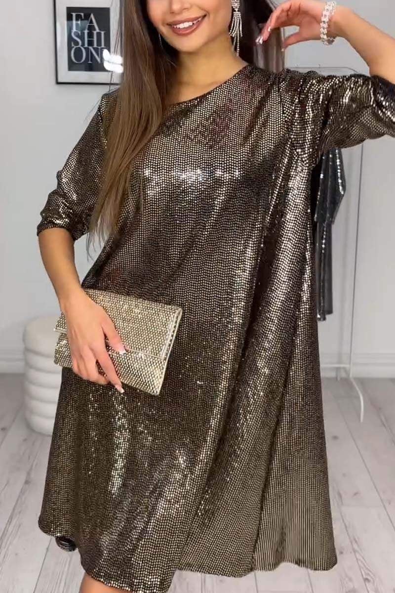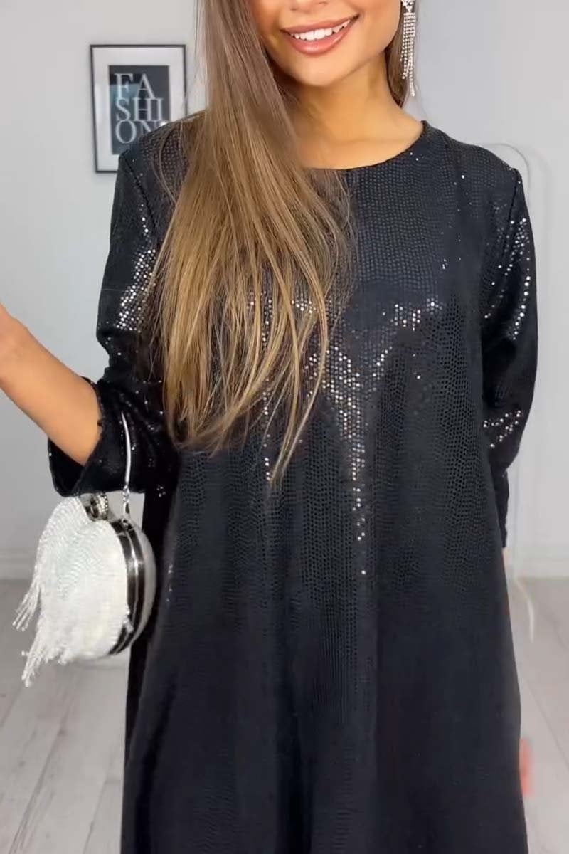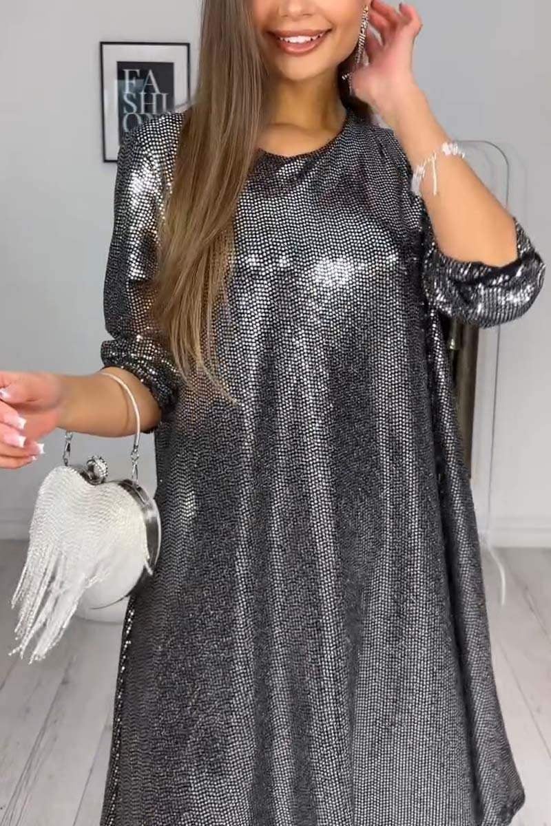 Fényes, hosszú ujjú női alkalmi ruha (ingyenes szállítás)