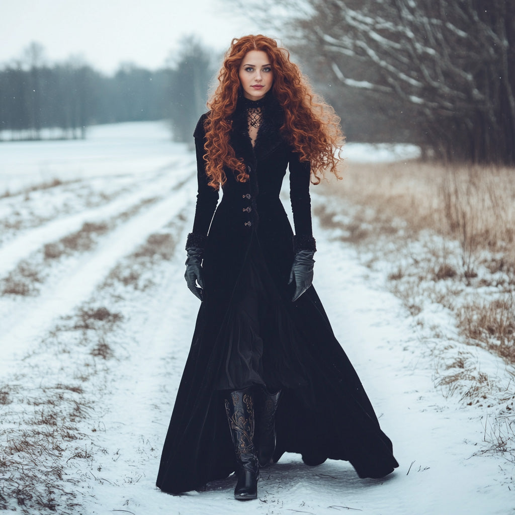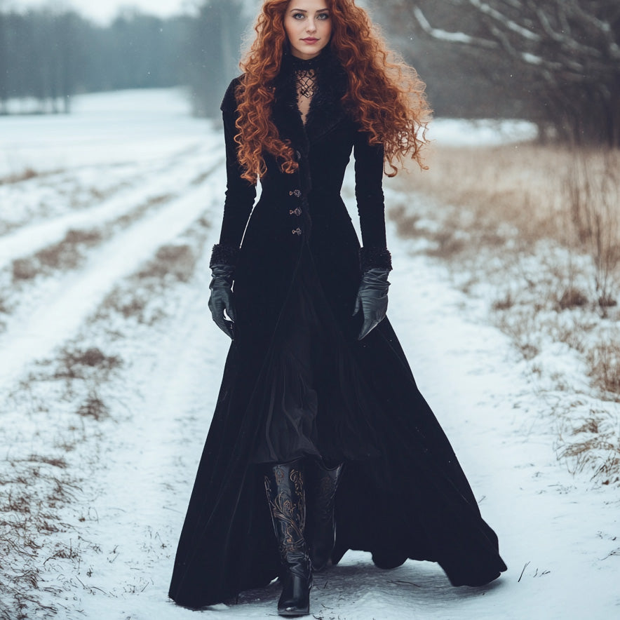Női Velvet Palace Retro szőrmegallér hosszú kabát