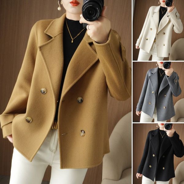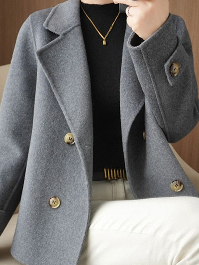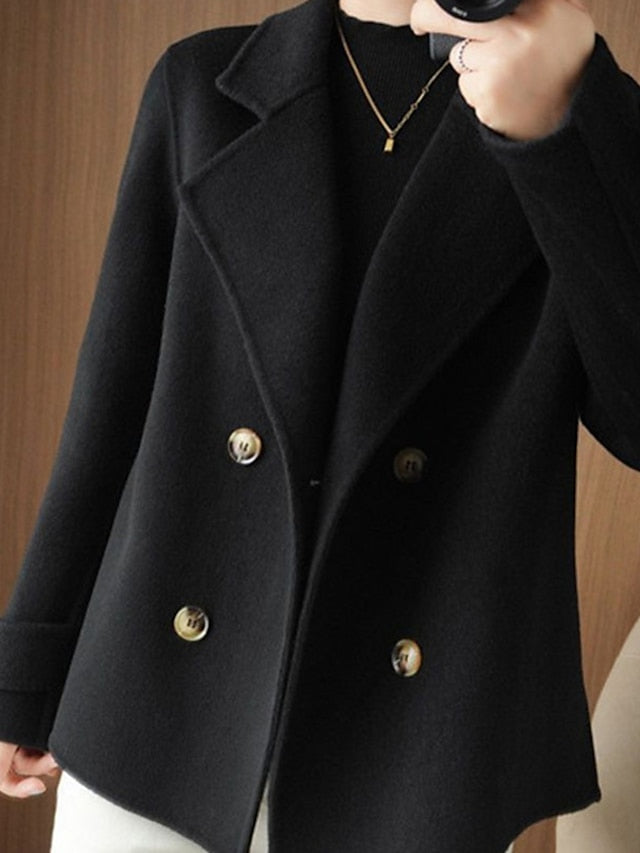 Női gyapjú kabát dupla hajtóka és hajtóka